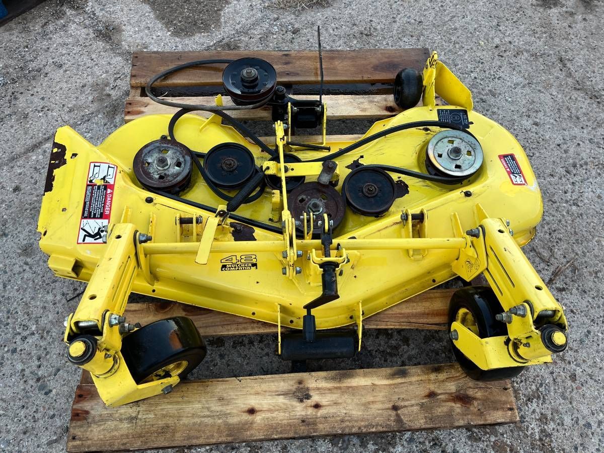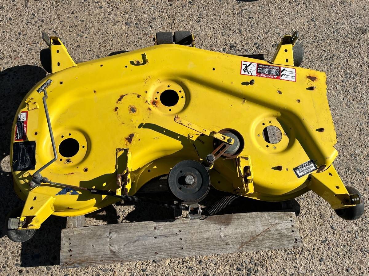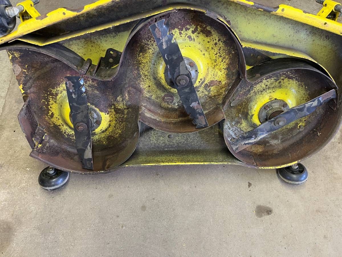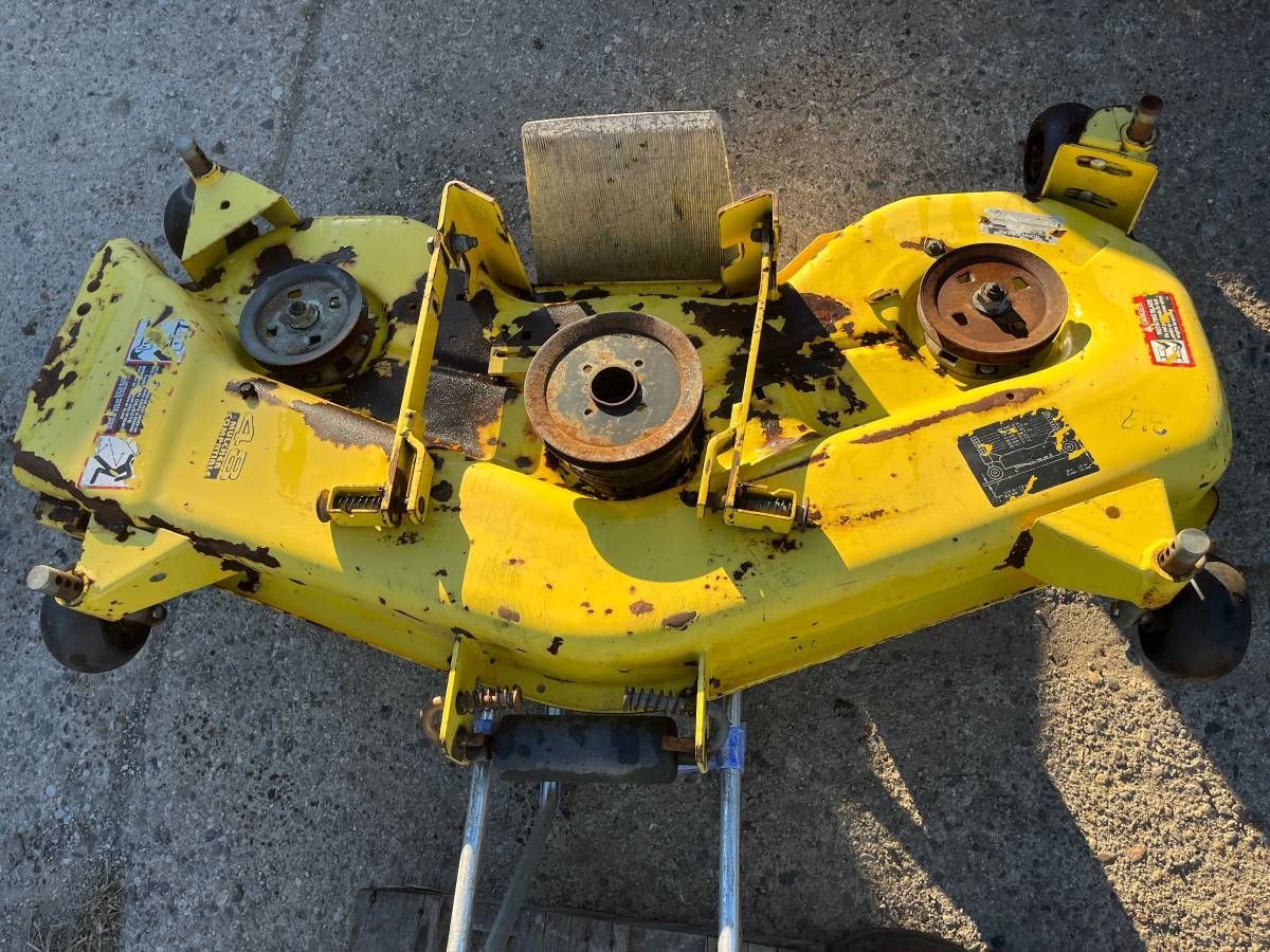Pictures #12-13 $125 for a used 48" Convertible deck for GT225 GT235 GT235E GT245 LX255 LX266 LX277 LX279 LX280 LX288 LX289 GX255 GX325 GX335 GX345 GX355 325 335 345 355D. Missing spindles, has cracks (D53) (C4)