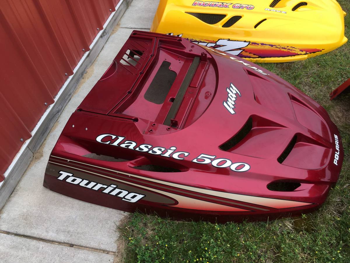 Used snowmobile hoods. All that I have is what is in the pictures. Price is plus tax. No trades. ThanksIf you see an individual picture of it I do still have it. $75
